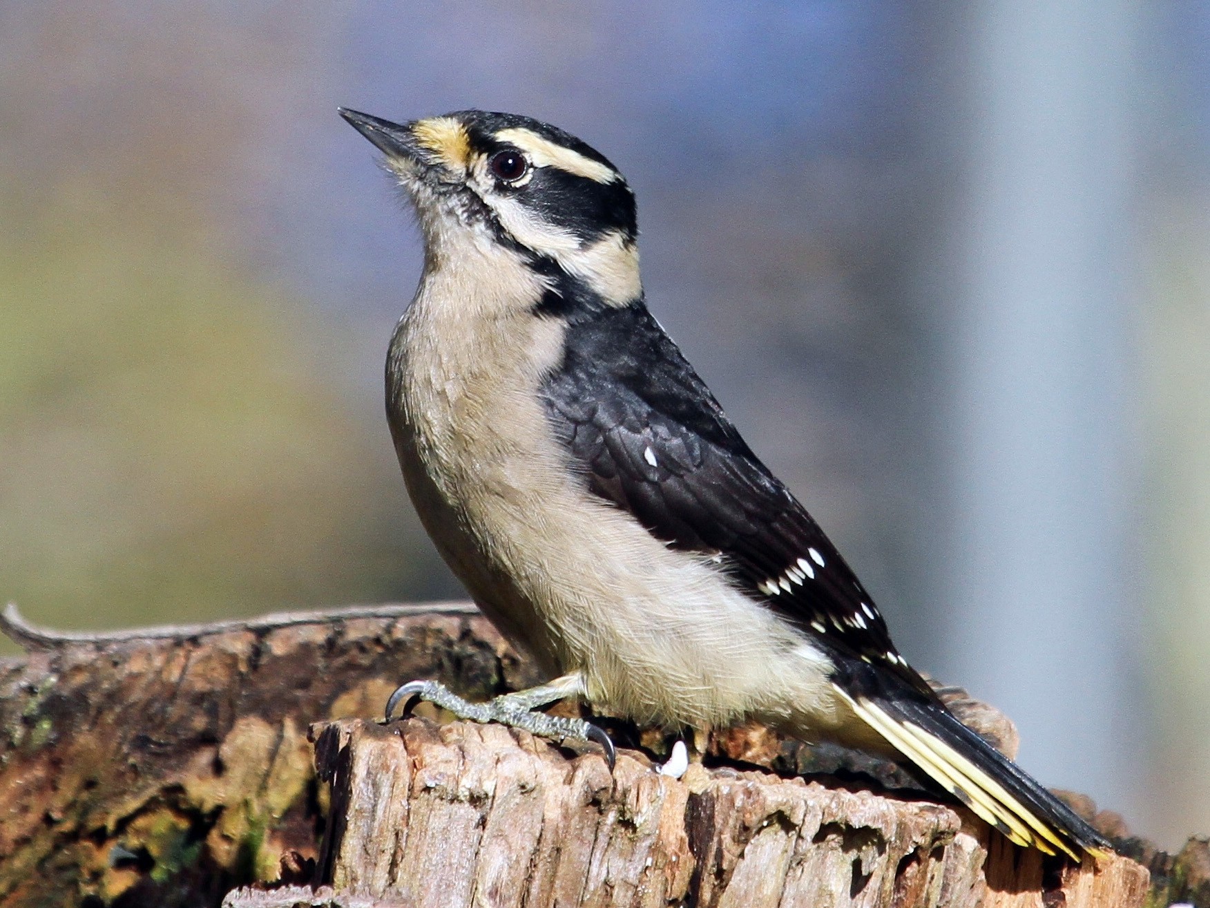 Downy woodpecker | audubon field guide the smallest woodpecker in north america, common and widespread, although it avoids the arid southwest. In all respects it suggests a small version of the hairy woodpecker, both differing from our other species by. Its underside is white, and its head is marked with wide alternating black and white stripes. The hairy prefers towering trees and deeper woods, while the downy will settle for baby birches and cattails. Body mass ranges from 20 to 33 g (0.71 to 1.16 oz). Its plumage is a mix of black and white (but see below.) its wings, lower back, and tail are black with white spots; Academy of natural sciences of philadelphia and american ornithologists' union. It is a confiding bird that often visits feeders. Its upper back and outer tail feathers are white. They are the smallest woodpeckers in north america at around six inches in length. In the east this is the most familiar member of the family, readily entering towns and city parks, coming to backyard bird feeders. The total length of the species ranges from 14 to 18 cm (5.5 to 7.1 in) and the wingspan from 25 to 31 cm (9.8 to 12.2 in). Feb 13, 2015 · lastly, it's important to note that the downy woodpecker is much more abundant than its hairy counterpart, especially in suburbia.