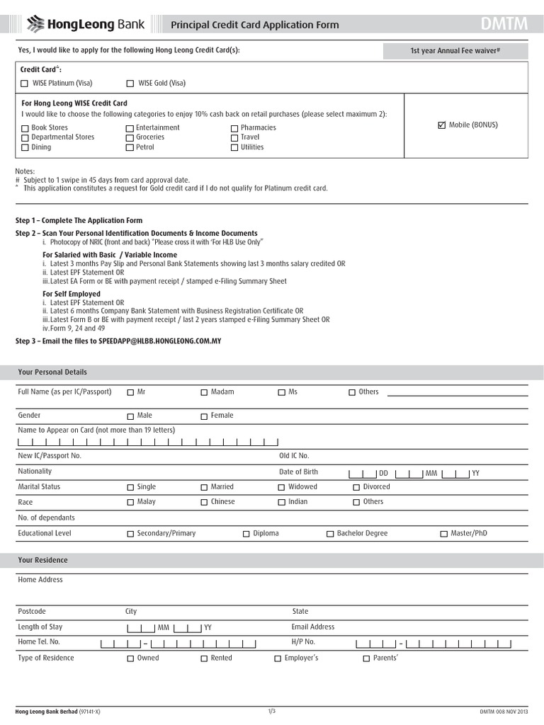 Fillable Online Hong Leong Bank Card Centre Fax Email Print Pdffiller from www.pdffiller.com Preferential forex rate you are now entitled to preferential forex rate for outward remittances by just producing your credit card at any of our bank branches. Aminvestment research is maintaining its buy on hong leong bank (hlbb) with a revised fair value (fv) to rm20.90/share (previously rm20.30 a share). When you make a payment using your credit card, you are essentially "borrowing" money from the card issuer and are asked to repay the amount at the end of each month. Income rm2,000 /month annual fee free* cashback up to 1%; All designed to cater for the different needs and lifestyles of the customers. Well, there are cards where you don't have to worry about the credit card annual fee as they offer zero annual fees. Your branch code, however, is typically the first three numbers of your account number. To find your bank code, you can bookmark this hong kong bank look up tool!